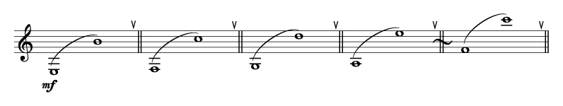 ♩=50程度を目安に下の音4拍、上の音4拍かけてやってみましょう。