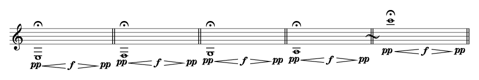 クレッシェンドとディミヌエンドの際にピッチがなるべく変化の少ないように、チューナーを使ってチェックしてみましょう。口元でコントロールせずに息の圧力でコントロール出来ると良いと思います。ppの時には細い息にならないように、大量の息がゆったりと流れていくイメージです。