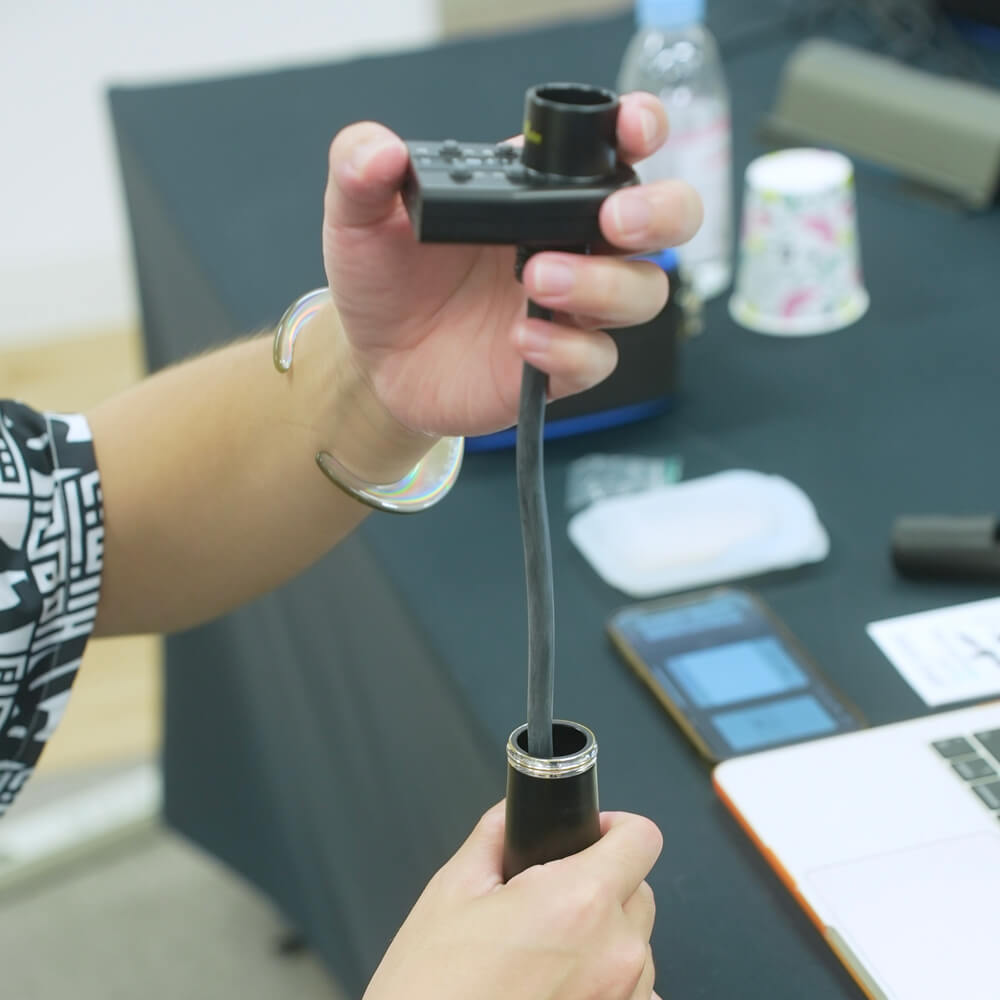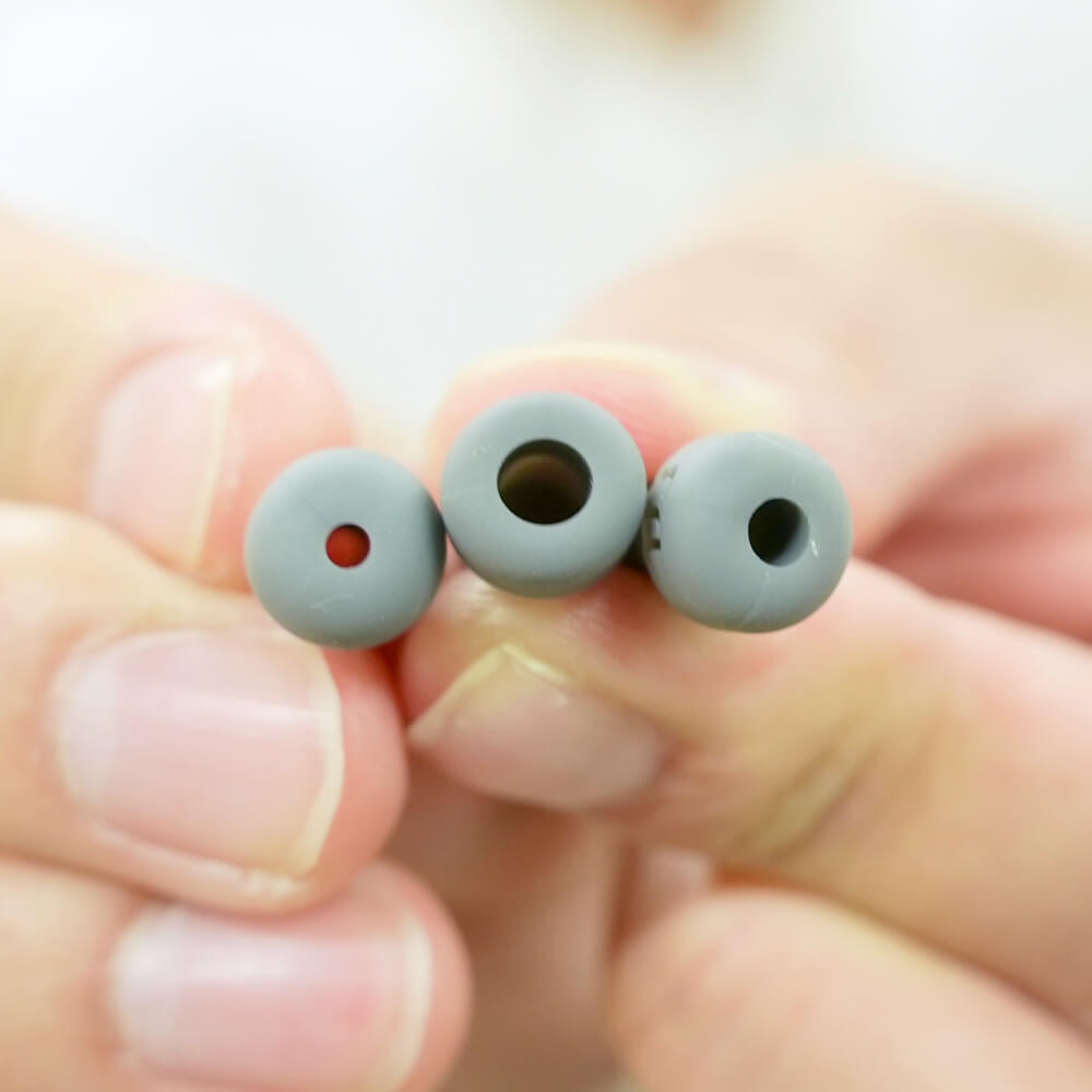 3. チューブの先端はプラグを差し込むことができ、アナログ的に抵抗感を変えることもできる。プラグは3種