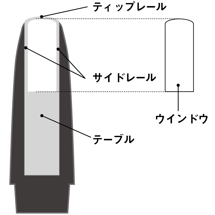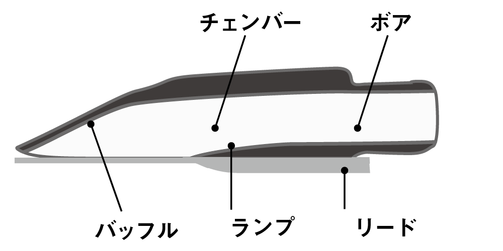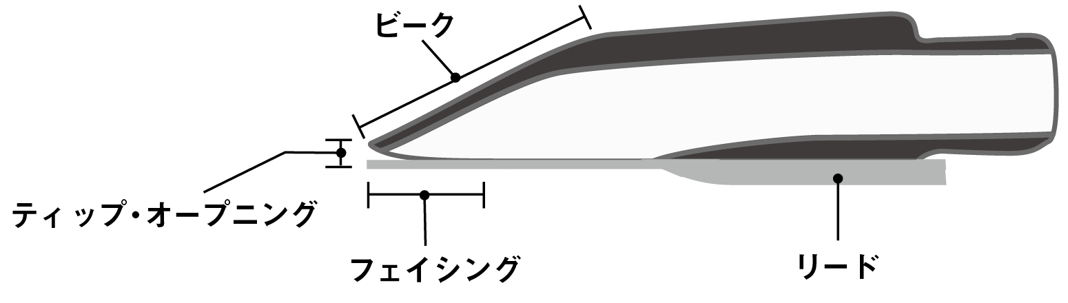 このティップ・オープニングとフェイシングの関係、そしてフェイシングのカーブの形状が音色や吹奏感に大きく影響する。