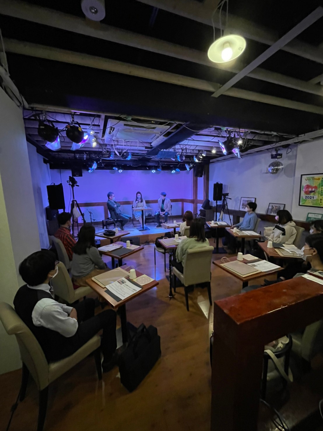 ドイツから一時帰国している大沼さんを囲んで、田中正敏先生と、東京交響楽団クラリネット奏者の小林利彰さんとの3人での対談からスタートしました。ドイツでリード作りを学んでいる大沼さん、ウィーンでリード作りを学んだ小林さん。同じクラリネットのリードですが、国や時代によって作り方にそれぞれに違いがあり面白い対談でした。