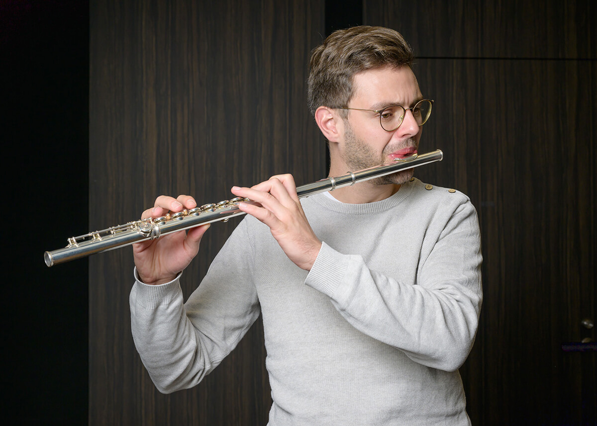 フランスでは、フルートを始めるのはもう少し年齢を重ねてからのほうが一般的ですが、私は6歳のときにフルートを習いたいと思い、1年間待って実際は7歳から習い始めました。幼児用のU字管フルートなどありませんでしたので、最初から普通のフルートを使用しました。当時、自分は身体が小さかったため、しばらくは頭部管だけを使って練習し、次に左手を追加し、楽器を支えられるようになって右手を加えるなど、段階を追って練習を進めました。当時習っていたシュテファニー・コンディァックは、まだ学生でしたが、非常に上手に子どもたちに教えることができる素晴らしい先生で、彼女のおかげでレッスンはとても楽しく、私は毎日フルートの練習に打ち込むことができました。今でもその先生に深い感謝の念を抱いています。
