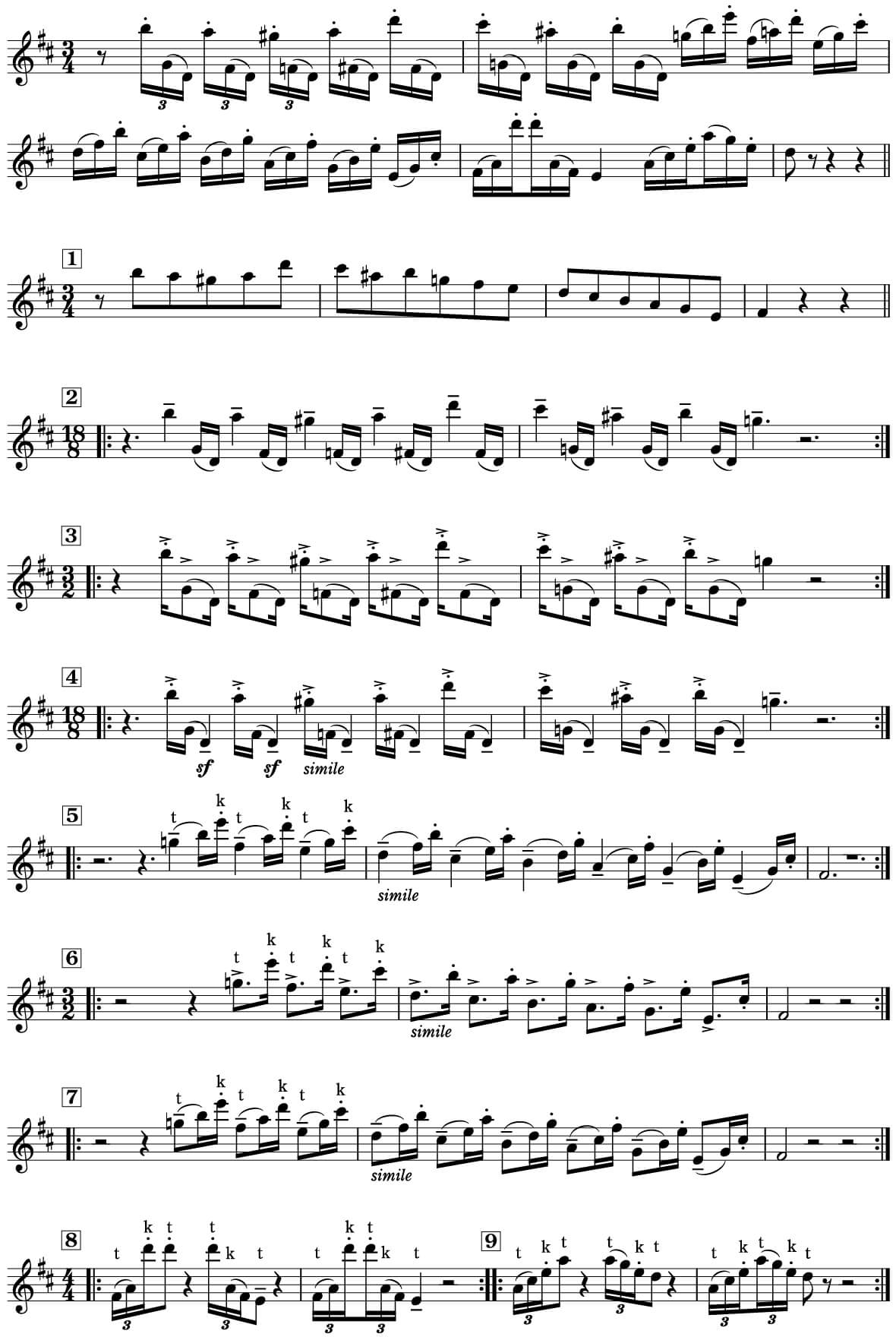 【譜例9】のモーツァルトの協奏曲では、最大2オクターブの跳躍を吹かなければなりません。