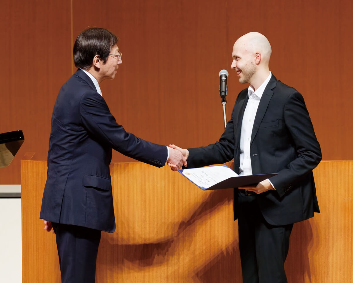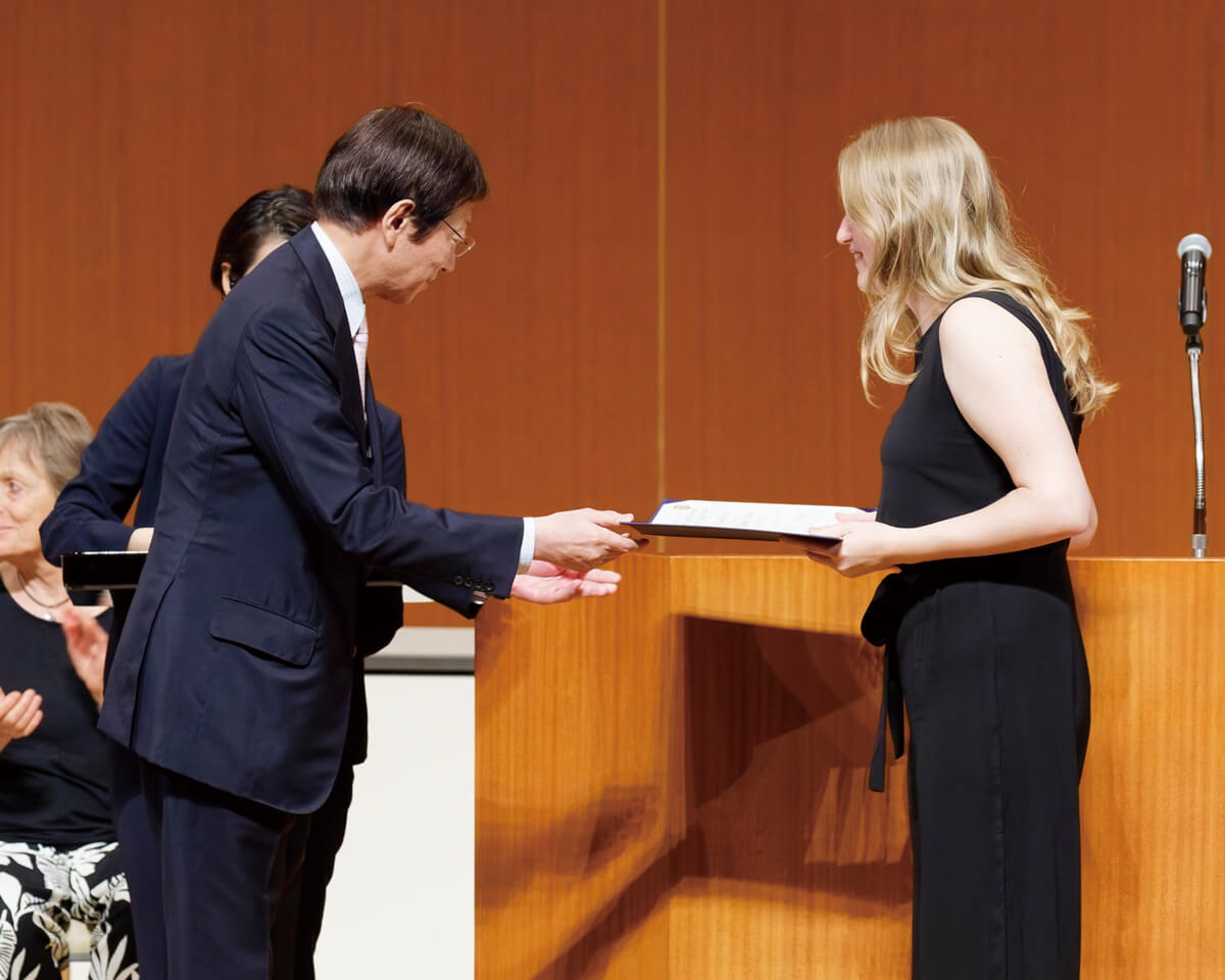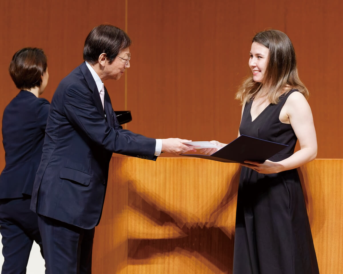 演奏会は5位入賞のフンデリッチさんによる『モーメンツ』でスタート。歌い方や音色で主体的に場面を切り替えていき、石橋さんが演奏するキレのあるピアノとのアンサンブルを楽しむ様子も伝わってきた。続いて4位入賞のコマロワさんによる『演奏会用小品』。テクニックも音楽の中に溶け込ませ、細かい変化も余すことなく表現。一次審査時にはカットされたピアノの間奏も岡本さんにより演奏され、作品を存分に堪能する。そして3位に入賞した藤野さんの『幻想曲風ソナチネ』の演奏へ。艶のある音色と、体全体をしなやかに使ったスケールの大きい表現力が魅力的だ。その高らかに歌い上げる演奏には心が揺さぶられた。続いて同じく3位入賞のウヌクさんはJ.S.バッハの『ソナタ BWV1030』を演奏。與口さんの精緻なピアノと織りなすように絡み合う。華美なヴィブラートに頼らないウヌクさんの表情豊かな演奏は、彼女の良質な音色も際立たせた。