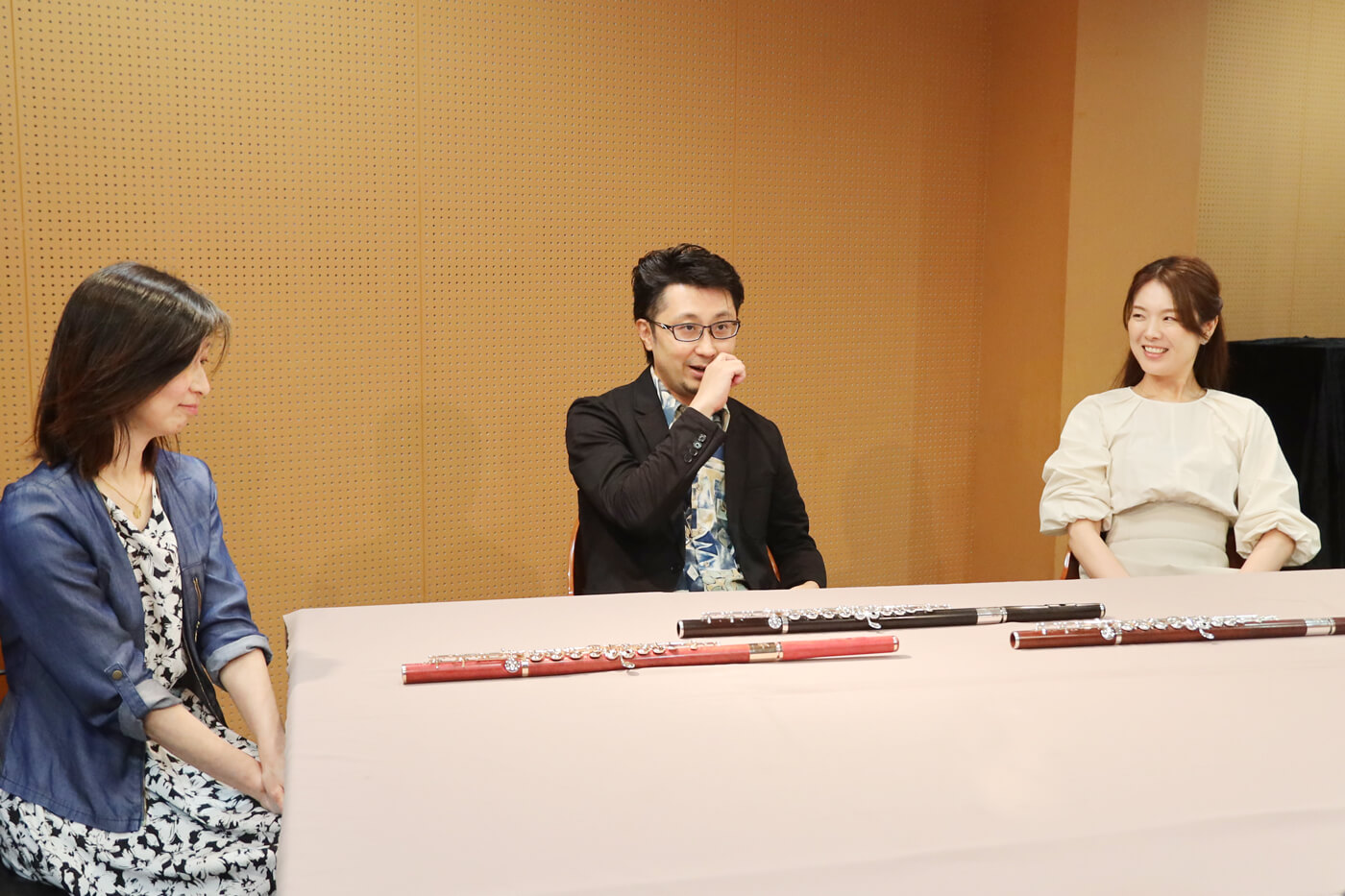 竹山 私も三響の輝きや華やかさに魅せられて戻ってきた形になりますが、多久さんがおっしゃるとおりで、なおかつ三響は奏者のパーソナルな部分を受け止めてくれる楽器なのでは、と思います。三響のアーティストさんは皆さん華があると思いますが、それぞれの特徴がよく出ているなと。各自のスタイルが明確に出るところに、三響フルートの奥行きや懐の深さを感じます。木管フルートもこうして種類があって、同じ奏者が吹いてもこれだけ音色が違うから、すごく多様性があって面白いです。