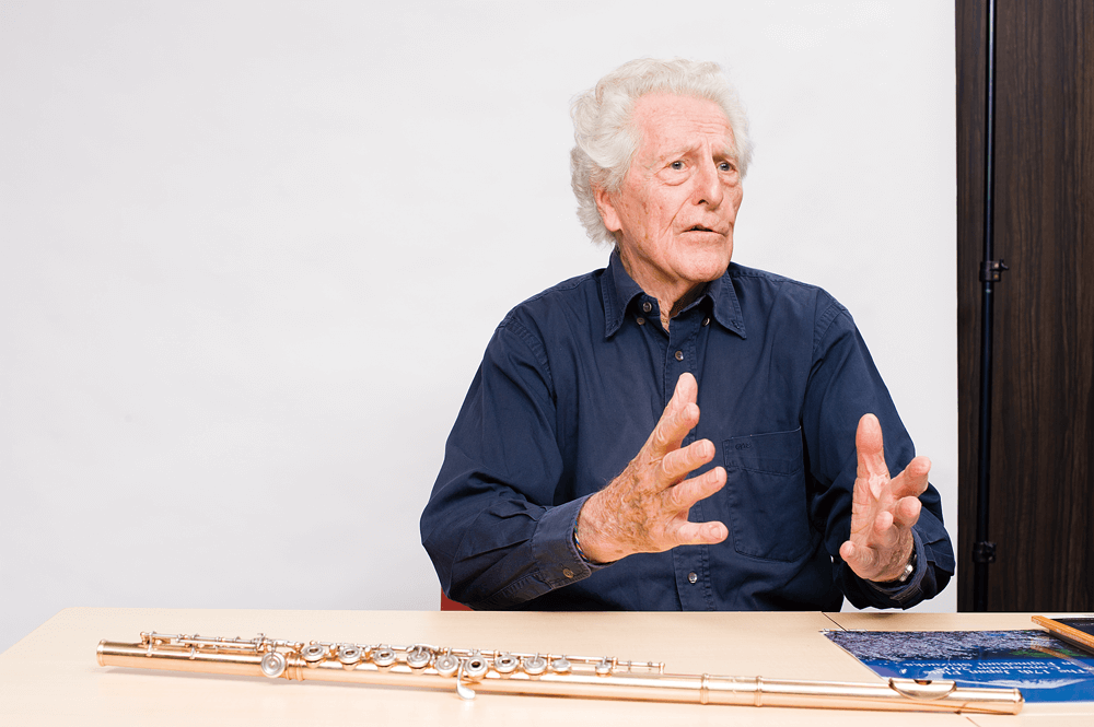 この8月、浜松で開催された日本フルートコンヴェンション。そのメインゲストの一人であるペーター=ルーカス・グラーフ氏に、インタビューを行なった。86歳の大御所でありながら、よりよい音楽表現の追求に余念がないその姿は、コンヴェンションに集った若きフルーティストたちを大いに刺激したに違いない。コンサートで演奏したシュトックハウゼンの曲に施した“しかけ”とは? 同じくメインゲストであったフィリップ・ベルノルド氏との共演で味わった、世代も音楽性も超えて理解し合う体験とは……?コンヴェンション終了後、札幌公演に向かう合間のひとときに話を伺った。
