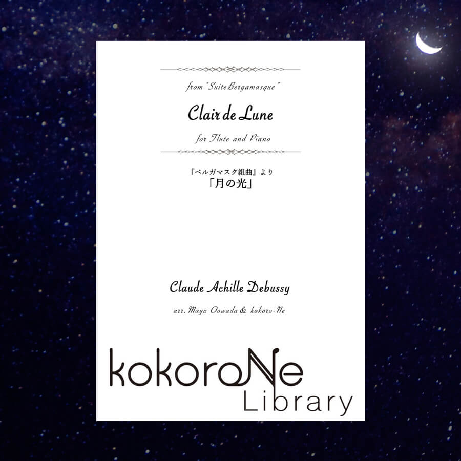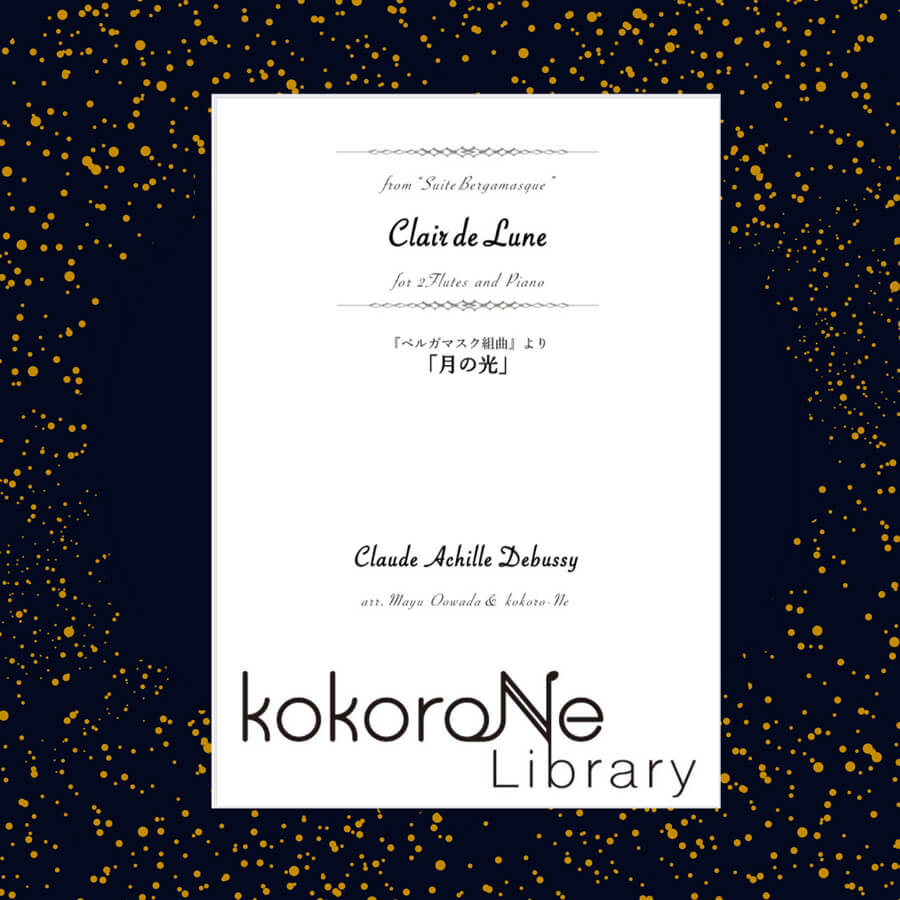 kokoro-Neではフルート2本と1本、2パターンでダウンロード楽譜を出版しています。どちらもピアノと同じDes-durで書きました。こちらはシックで透明感のある響きになっています。♭♭♭♭♭……5個、「めんどくさい」と言わず、是非チャレンジしてみてください。
