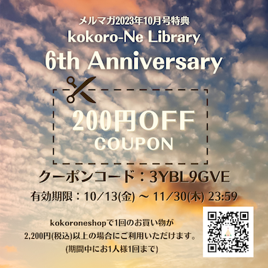 おかげさまでkokoro-Ne Libraryも6周年を迎えることができました。今回はメルマガ会員様限定のクーポンを、このコーナーをご覧の皆様にもプレゼントいたします。これまでにご紹介した楽譜にも是非ご利用ください。