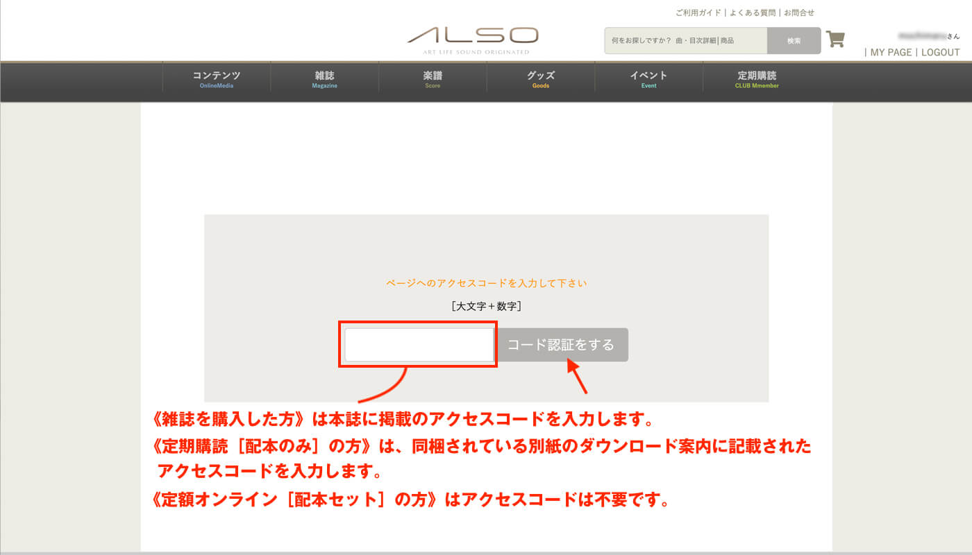※《雑誌を購入した方》は、本誌に掲載のアクセスコードを入力してください。※《定期購読[配本のみ]の方》は、本誌をお送りする際に別紙のご案内を同封しておりますので、その案内に記載されたアクセスコードを入力してください。※《定額オンライン[配本セット]の方》は、アクセスコードの入力は不要です。