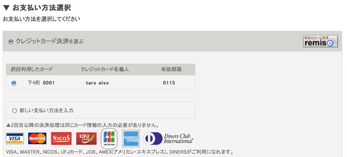 二回目以降のお買い物にはカード情報を入力せず手間なく決済処理を行えます。