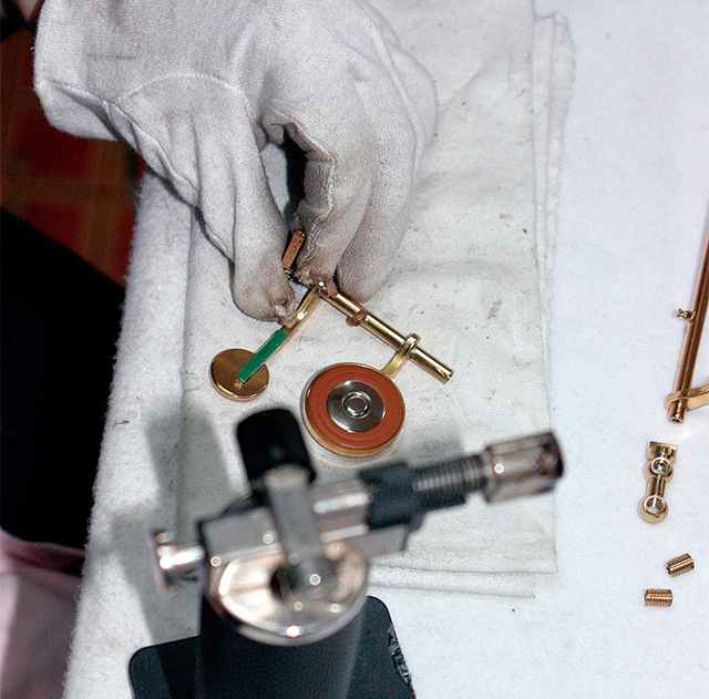 ▲充分なラックをつけたタンポを、キィの中心に接着し直すことで、組み立て後のタンポ調整の変化の狂いが少なくなる。