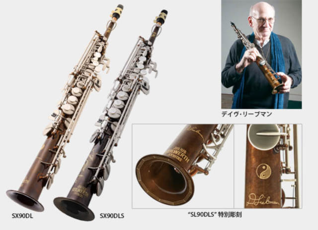 伝説のサックス奏者デイヴ・リーブマンと、ユリウス・カイルヴェルトとのコラボレーションによって誕生したソプラノサクソフォンSX90。“SX90DL”は、演奏パフォーマンス向上のために考え抜かれたキィ・デザインが独自の高い操作性を誇る。左手スプーン・キィ(D、Eb、E、F、F#)とオクタ−ヴ・キィは、張り付き防止のためにコルクパッドを使用している。 “SX90DLS”は、デイヴ・リーブマンの使用楽器をそのまま再現した待望のモデル。管体およびベルには、リーブマンの音楽観を表した総手仕上げの特別彫刻と、彼自身のサインが刻まれている。