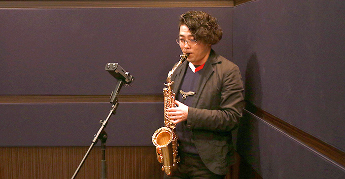 録音機の活用方法を身につけ、読者の皆さんにさらに充実したサックスライフを送ってもらおうというこのコーナー。目からウロコのレコーダーの活用方法を、 第一線で活躍するプロフェッショナルに訊いていきます。vol.75に掲載の第2回「本格録音編 その1」の誌面では、マルチサックスプレイヤーの福井健太氏とレコーディング&マスタリング・エンジニアの葛巻善郎氏に、TASCAM DR-44WL を使いこなして徹底的にいい音で録音するためのノウハウを教えてもらっています。サックスオンラインでは、実際にスタジオにてDR-44WLを 使用して録音した音源を公開します!