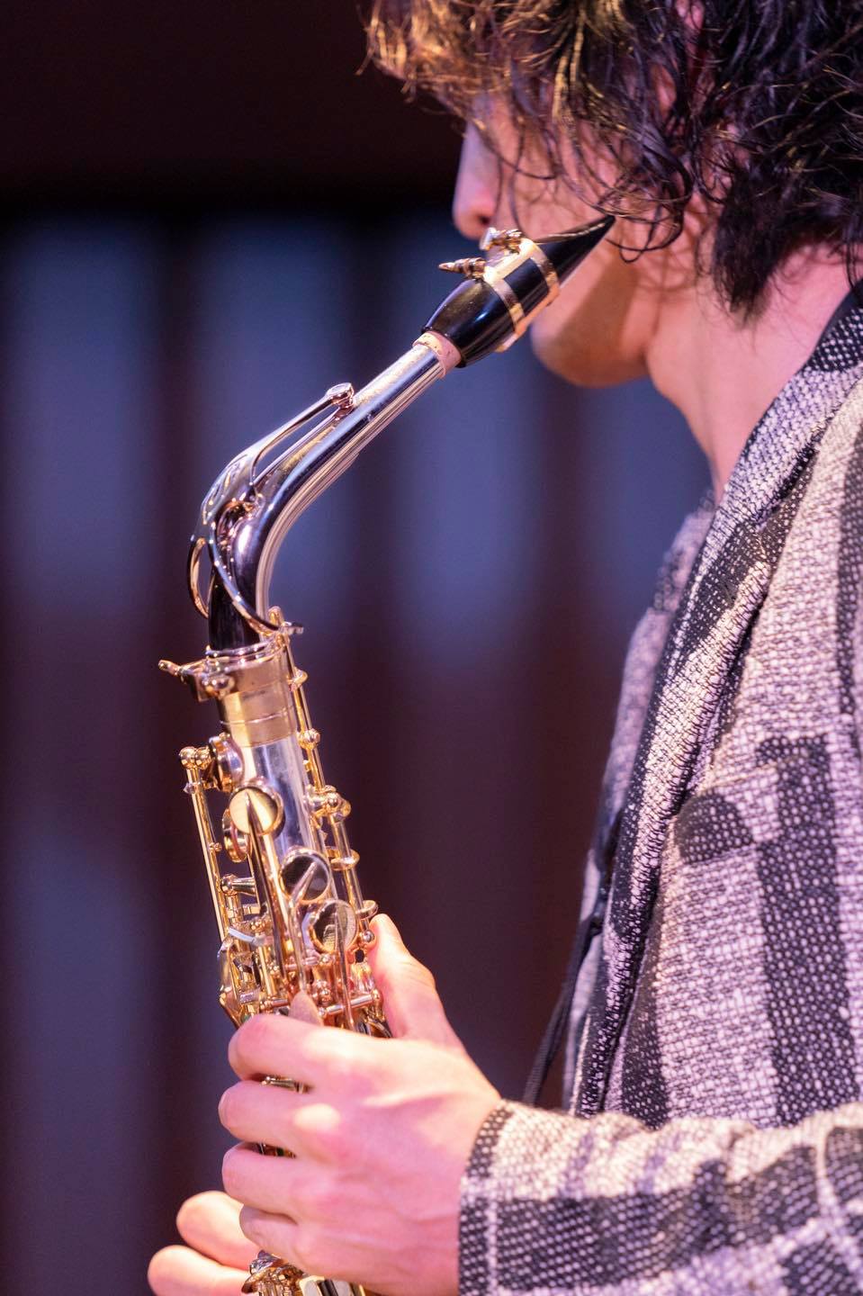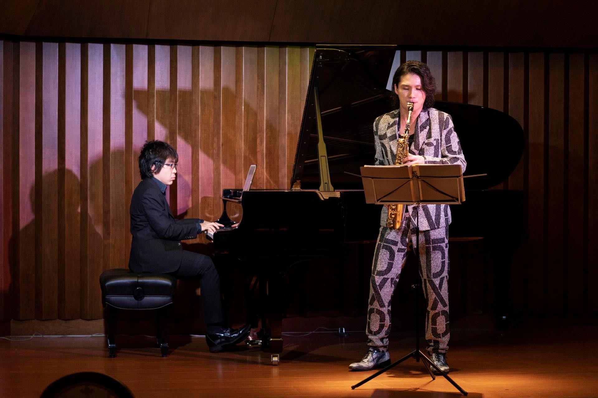 見どころは……、僕と黒岩くんの疲れ具合の移行がよくわかるところでしょうか(笑)。緊張状態の第1部から、第2部で少しずつ疲れが見えはじめて……。第3部は、疲れはあるけど逆に音楽的集中力が一番高かった時間帯でしたね。第4部が一番キツくて、僕も黒岩くんも完全に思考停止状態で (笑)。学生が最初の頃に取り組むような『プロヴァンスの風景』という比較的やさしめの曲で、練習でも間違えたことないようなところがボロッボロで。もうダメかと思いました (笑)。でも第5部は、最後に向かって集中力が高まっていくという感じで、サックスの王道中の王道曲を演奏したので、見どころはやはり最後の第5部かもしれないですね。