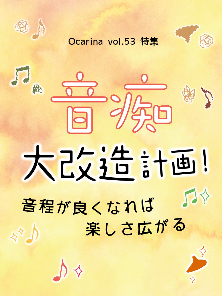 今号の特集は「音痴大改造計画 音程が良くなればもっと楽しめる」です。ドキッとしそうなタイトルですが、音程に関することに苦労している愛好家の方が多いというご意見をもとに特集を構成しました。執筆してくれたのはクラリネット奏者で、聴く耳育成®メソッドを主宰している有吉尚子さんと、クッキーハウスを主宰している小西恒夫さんです。さらに「耳を育てる」をテーマに、楽しみながら練習できる記事も掲載していますのでチャレンジしてみてください。インタビューでは、岡山を中心に活動している渡辺史子さんが初登場です。作曲家としても活躍が期待されている渡辺さんの素顔に迫りました。前号の特集「楽譜のいろは」では、皆さまから大好評をいただき、早くもシリーズ化しました! 第1回となる今号は「譜読みって何?」と「楽譜に書かれた言葉を知ろう」の2本立てです。「レパートリーを増やそう!」では、人気作曲家の青島広志氏の作品が、Ocarinaに初登場! 『カッコー〜主題と6つの変奏』は、これまでの本誌にはなかった楽しい作品です。音楽用語もたくさん出てきますが、「楽譜のいろは」に解説を掲載しています。本コーナーに連動した音源は、オカリナセブンの佐々木一真氏が収録してくれました。誌面には他にも人気の楽曲の楽譜を掲載していますので、ダウンロード音源やCDとともにお楽しみください。