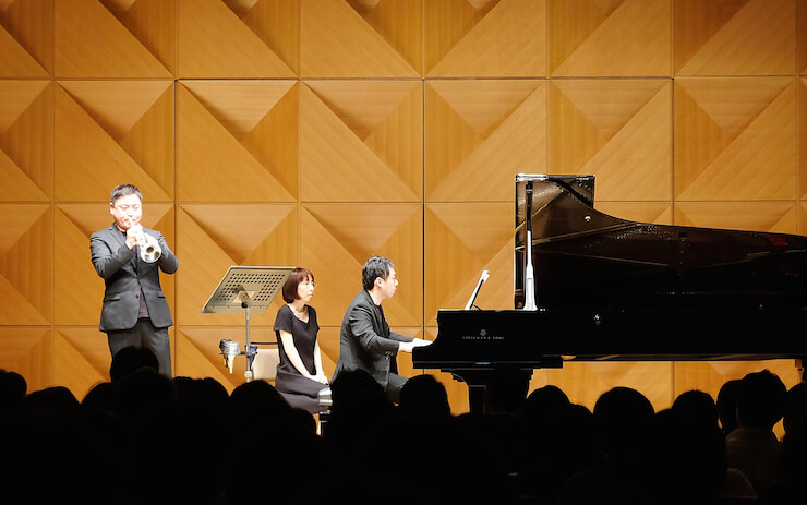 プログラム第1曲目からホール中に響き渡るトランペットの豊かな音に、リサイタルを心待ちにしていた観客は一気に釘付け。芳醇な響きが耳に心地よく、『カルメン組曲』では旋律、伴奏、対旋律ともに音色を使い分けるなど、技術の高さを魅せた。アンコールでは自身のCD(「トリオ・デ・クエスト」シリーズ)にも収録しているドラゴンクエストの名曲を演奏。