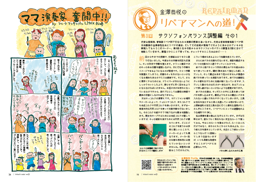 好評連載の「関井うららの 教えて! 部活のヒ・ミ・ツ」、「金澤恭悦のリペアマンへの道!」、「お手入れ向上委員会が行く!」、「ママ演奏家奮闘中!!」、や「放課後ういんどあい部」に加え、楽器メーカー、楽器店などの最新情報も満載!