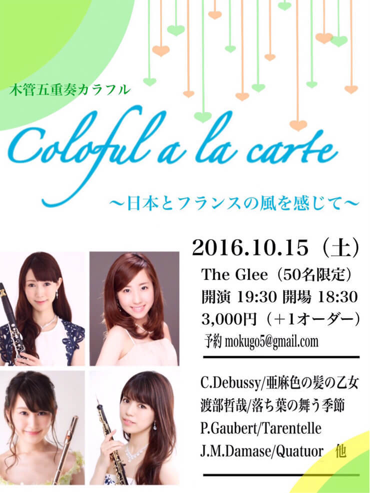 10月15日(土)に行なわれる木五カラフルの公演は、オーボエの大久保茉美が中心となってプロデュースする"Mami Presents"〜カラフル・アラカルト〜!